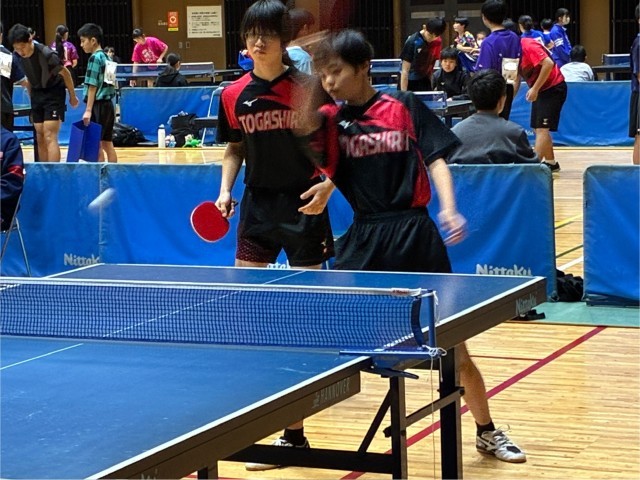 10月29日(水)、霞ヶ浦文化体育会館で行われた県新人大会に、本校卓球部から男子ダブルス1ペアが参加しました。1回戦は相手ペアのネット際を狙う緩いボールへの対応に手こずりながらも、攻守の緩急で相手を揺さぶり、ゲームカウント3対1で勝利しましたが、第4シードとの対戦となった2回戦は、自分達が仕掛けた変化球が返球された時の回転への対応を怠る等集中力を欠き、ゲームカウント1対3で敗れてしまいました。点数に表れた結果以上に残念だった試合内容を素直に反省し、総体に向けて1から出直します。