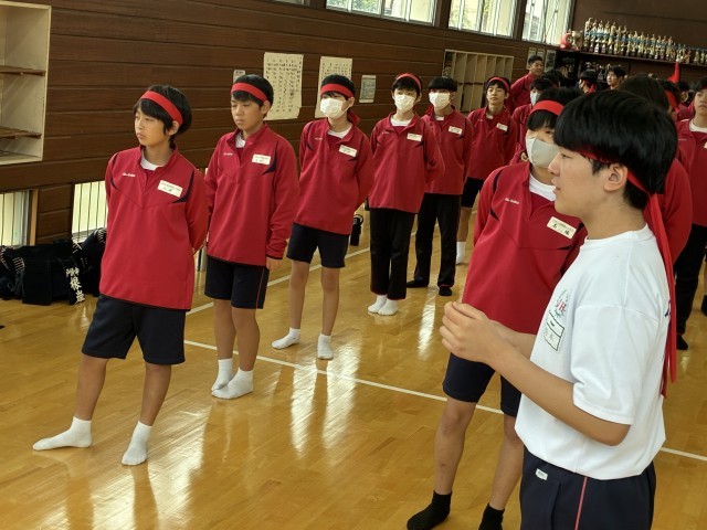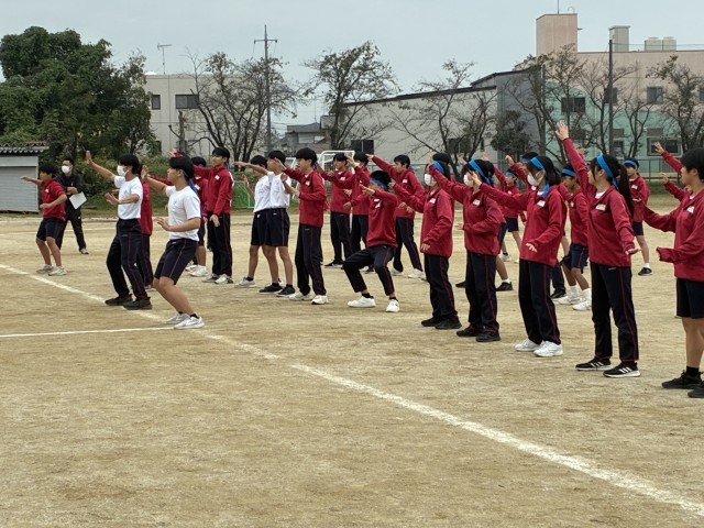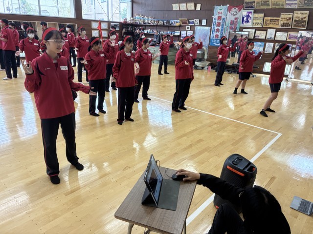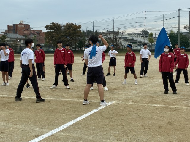 各団が集まって団演技の練習に取り組んでいます。まだ仕上がり具合に不安がありますが、応援団を中心に話し合い、細部にこだわっての調整が行われています。