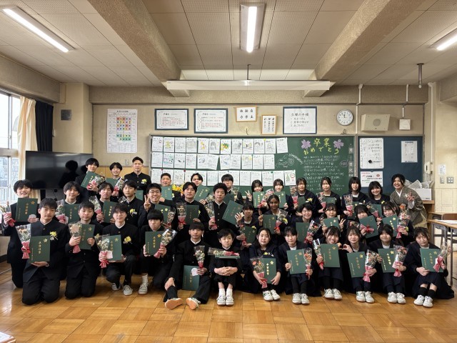 3月10日(火)、第50回卒業式が行われ、83名の3年生が無事に戸頭中学校を巣立っていきました。生憎の天候となりましたが、お世話になったすべての人に感謝を伝えようとする3年生の成長した姿と、先輩たちの卒業をしっかりと見届けようとする在校生の真剣な態度によって、厳粛であたたかい式となりました。卒業生が今日の感動を胸に、それぞれが選んだ道を自分の力で着実に歩んでいってくれることを期待しています。「卒業おめでとう‼」