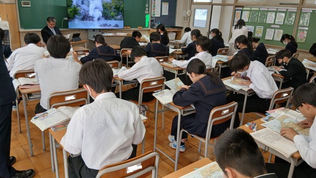 画面に写し出された風景は、どの都道府県のなんという名所でしょうか・・・。地図帳に向き合って、ページをめくりながら、探しています。