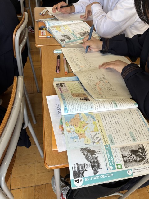 第二次世界大戦に至るまでの世界情勢の流れを学習しています。みんなの学習に向かう姿勢から迫力を感じます。