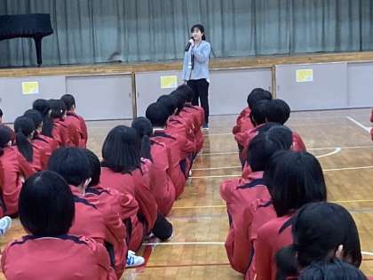 保健主事から身を守るキーワード、3秒3分の話、教頭から静かに素早く避難するための行動についての話がありました。