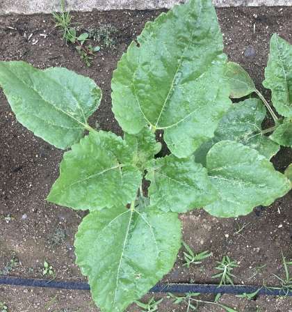 南棟,卓球室前の花壇ではヒマワリとアサガオが育っています。