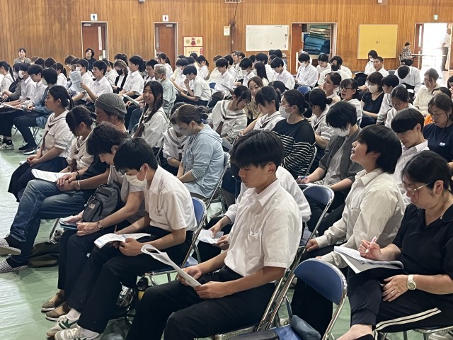 卒業後の進路選択に向けて、3年生の親子を対象に進路学習会を実施しました。前半は高校の先生をお招きして、受験の心構えについての講演、後半は3年職員から進路決定までの流れの説明を実施しました。生徒たちは自分事として捉え、真剣に聞いていました。