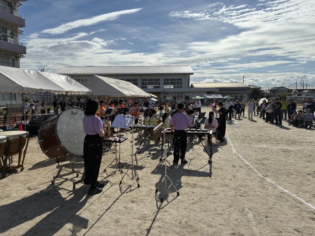 相馬地区市民運動会で吹奏楽部が演奏をしました。爽やかな秋空の下、素敵な演奏を響かせていました。