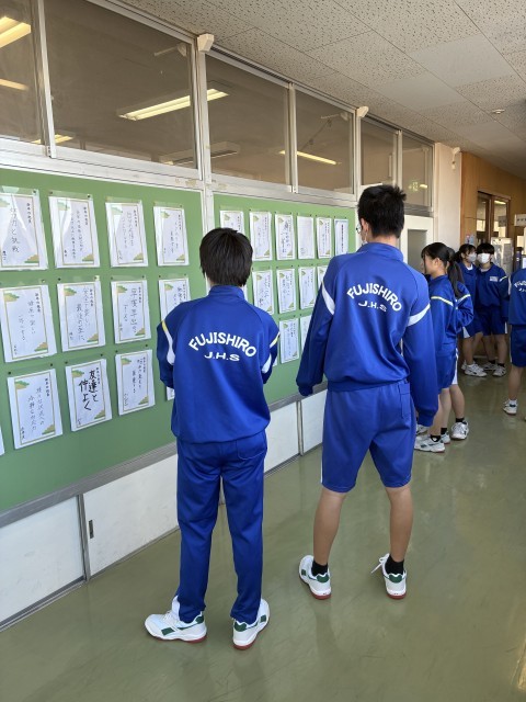 新年初の登校日でした。今年の抱負を考え、紙に書きました。さっそく掲示し、みんなの今年への思いや、頑張りたいことを共有しました。みなさんにとってよりよい年となりますように…