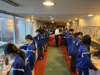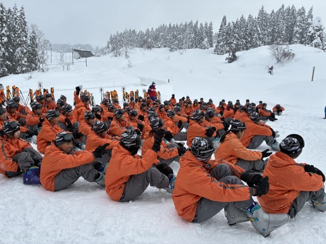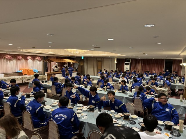 スキー宿泊学習 公開日 2026/02/01 更新日 2026/02/01 1年生 1日目のスキー実習を終えて、夕食の時間です。初めてのスキーに苦戦しながらも友達と励まし合って頑張っていました。明日はリフトに乗る予定です。