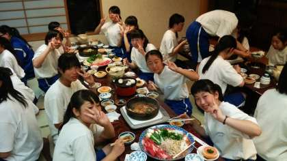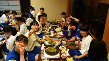 みんなわいわい食べています。 とても,おいしそうです。