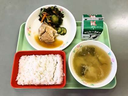 4月11日(火)の給食 公開日 2017/04/11 更新日 2017/04/11 学校行事 今日の給食の献立は 麦ごはん 牛乳 煮魚 ワカメときゅうりの酢の物 ごま味噌汁 です。 カロリーは,771㎉です。