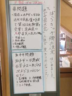 いばらきっ子郷土検定に向けて 公開日 2017/04/19 更新日 2017/04/19 学校行事 2年生を対象に茨城県独自の郷土検定が行われます。この取組みを通して,郷土への愛着や誇りを育むことを目指しています。 11月に各学校で検定を行う予定です。検定の結果によって市の代表校が決められ,2月に県大会があります。検定目指して始動しました。