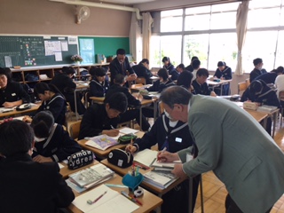 数学の授業では,1年生も,3年生も2人の指導者によって,個に応じた指導を行っていました。