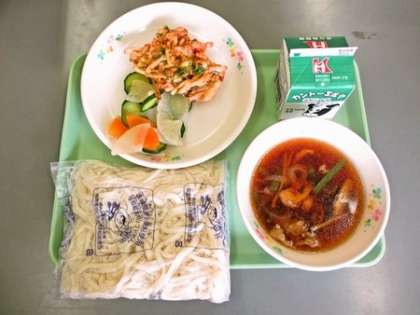 4月26日(水)の給食 公開日 2017/04/26 更新日 2017/04/26 学校行事 今日の給食の献立は 山菜うどん(ソフトめん・山菜うどん汁) 牛乳 かき揚げ 三色漬け です。 カロリーは,845㎉です。