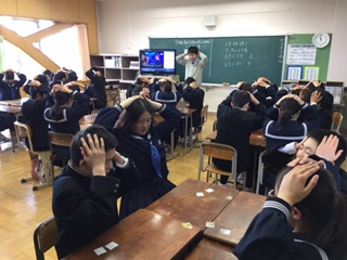 英語の授業でゲーム形式で英語に親しんでいます。 みんな楽しそうに,活動していました。