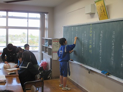 生徒総会に向けて 公開日 2017/04/28 更新日 2017/04/28 生徒会 各学級から出された意見をもとに,本部役員で話し合いをもちました。 本年の努力重点目標である「主体的、協働的活動」を踏まえたスローガンが話し合われています。