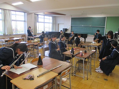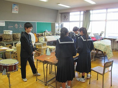 上級生が中心となり、それぞれの楽器の練習をしています。吹奏楽部は男女が協力して様々な楽器を担当します。
