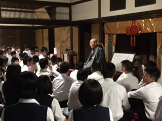 全員で二回に渡り座禅を行い,心静かな時間を過ごしました。 和尚さんからありがたいお話を伺うことができました。