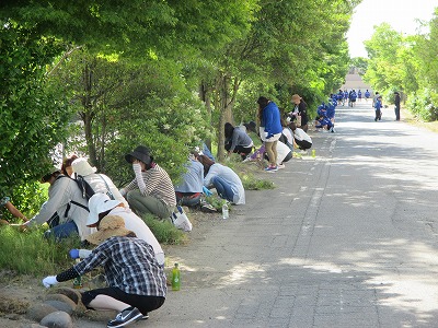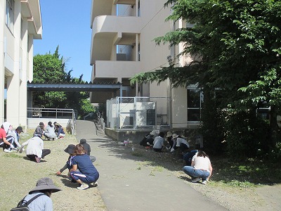 朝早くから、校内の除草作業が行われています。 たくさんのご参加ありがとうございます。