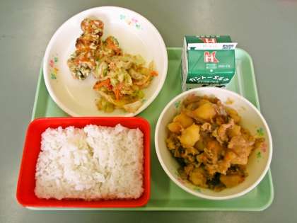 6月19日(月)の給食 公開日 2017/06/19 更新日 2017/06/19 学校行事 今日の給食の献立は ごはん 牛乳 ちくわの磯辺あげ おかか和え 肉じゃが です。 カロリーは,911㎉です。