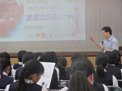 性に関する講演会 公開日 2017/06/23 更新日 2017/06/23 学校行事 講師に龍ヶ崎済生会病院産婦人科、陳 央仁先生をお招きして,性に関する講演会が行われています。 陳先生の穏やかで、熱いお話に引き込まれ、優しい気持ちになると同時に自分自身や周りの人の命の尊さを改めて考えることができました。
