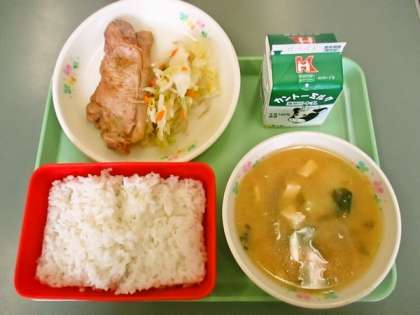 6月26日(月)の給食 公開日 2017/06/26 更新日 2017/06/26 学校行事 今日の給食の献立は ごはん 牛乳 豚肉のしょうが焼き 野菜炒め じゃが芋の味噌汁 です。 カロリーは,864㎉です。