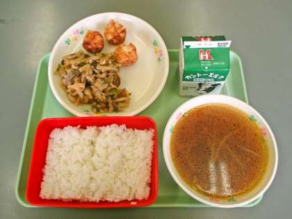 7月3日(月)の給食 公開日 2017/07/03 更新日 2017/07/03 学校行事 今日の給食の献立は ごはん 牛乳 揚げえびしゅうまい チンジャオロース もやしのスープ です。 カロリーは,839㎉です。