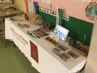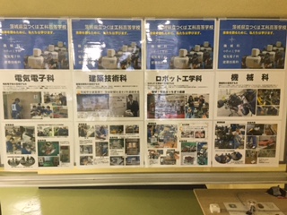 昇降口に高校生の作品が展示されています。 高校生でも専門的な活動をするのですね。