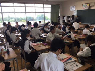 授業開始2分前です。 すでに着席しています。目標の「2分前着席」が実践できています!
