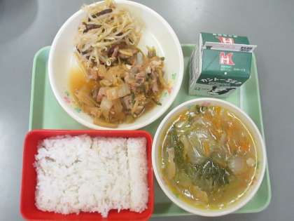 今日の給食 公開日 2018/10/23 更新日 2018/10/23 学校行事 今日の給食の献立は 麦ごはん 生揚げのキムチ煮込み もやしときくらげの和え物 春雨スープ です。 カロリーは,802㎉です。