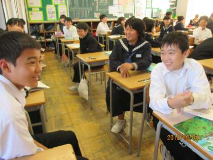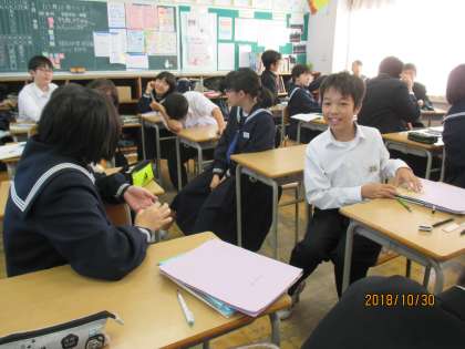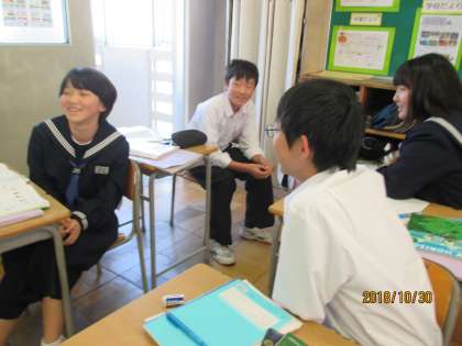 1年生の英語の授業では,電話のかけ方を学習していました。2人組での英会話の練習が,とても楽しそうでした。