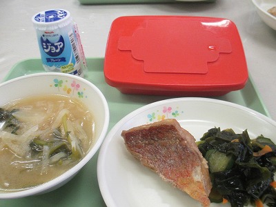 今日の給食 公開日 2018/10/30 更新日 2018/10/30 学校行事 今日の給食の献立は 麦ごはん 発酵乳(プレーン) 煮魚 ワカメときゅうりの和え物 大根の味噌汁 です。 カロリーは,735㎉です。