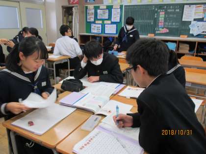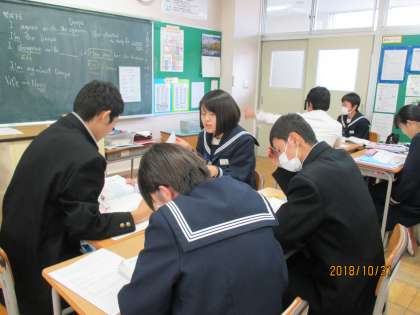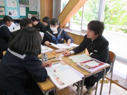 3年生の英語では,英文を読む練習をしていました。グループで和気あいあいと練習していました。