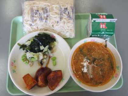 今日の給食 公開日 2018/10/31 更新日 2018/10/31 学校行事 今日の給食の献立は 肉味噌ごまつけ麺(ソフトメン 肉味噌ごまつけ汁) 大学芋 海藻サラダ(ドレッシング)です。 カロリーは,866㎉です。