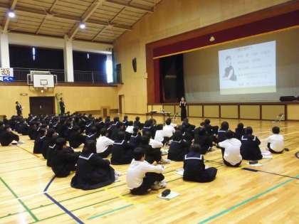 1学年 出前授業 公開日 2018/11/02 更新日 2018/11/02 学校行事 パナソニック株式会社から講師方を招き,1学年で出前授業を実施しました。「私の行き方発見プログラム」というテーマで,社会や会社に必要な能力や求められる姿勢について話をしていただきました。1年生にとって大切な事を学んだ1時間となりました。