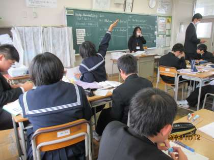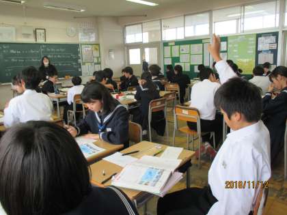 1年生の英語では,本文の内容を復習していました。グループで,仲良く学習する様子が見られました。
