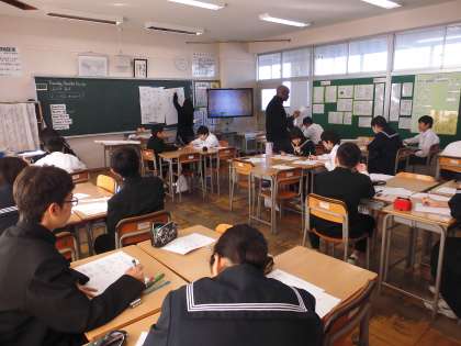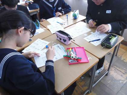 1年生 授業の様子 公開日 2018/11/15 更新日 2018/11/15 学校行事 1年生,英語の授業の様子です。on,in,near などの前置詞について学習しています。ワークシートを活用して聞き取った情報をもとに,どこに何があるのかまとめています。どの生徒もしっかり聞き取ることができていました。