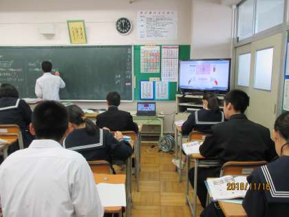 3年生の理科では,酸とアルカリについて,学習してました。質問が次々に出るなど,生徒達の活発な取組が見られました。