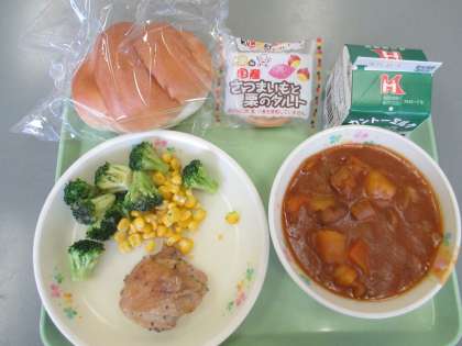今日の給食 公開日 2018/11/16 更新日 2018/11/16 学校行事 今日の給食の献立は リクエスト献立 宮和田小学校 です。 バターロール ハーブグリルチキン ブロッコリーサラダ(ドレッシング) ポークシチュー さつまいもと栗のタルト です。 カロリーは,805㎉です。