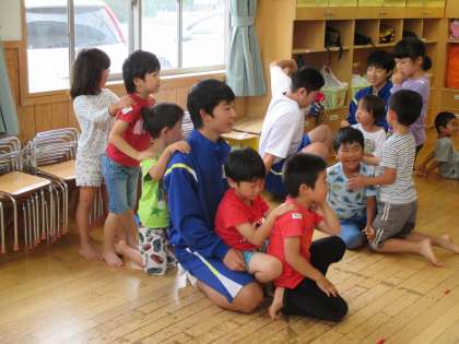 3年3組の生徒が幼児触れ合い体験に行きました。室内での活動でしたが,子どもたちと楽しく遊んできました。