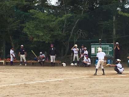 藤代南中との合同チームで予選大会に挑んでいます。頑張っています。4回裏攻撃中、5対1で勝っています。