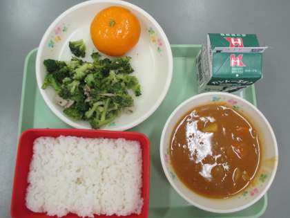 今日の給食 公開日 2019/09/02 更新日 2019/09/02 学校行事 今日の給食の献立は ごはん ポークカレー ブロッコリーのガーリックソテー 冷凍みかん です。 カロリーは,855㎉です。