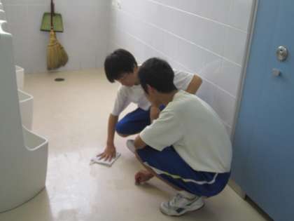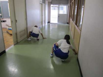体育祭の練習で少し疲れが見られますが,さすが3年生です。無言でそうじをしっかりと行っています。