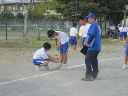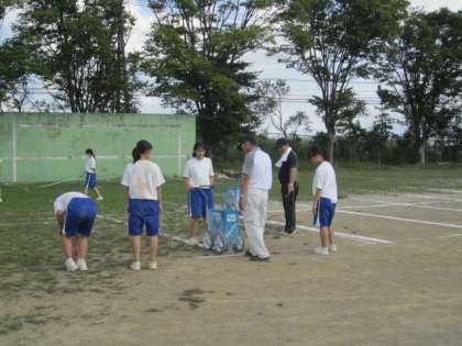 体育祭の競技や応援の練習を終えて,明日の本番に向けて,全生徒で会場の準備を行っています。
