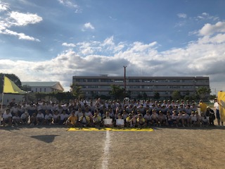 【体育祭】閉会式ショット3 公開日 2019/09/07 更新日 2019/09/07 学校行事 光団 総合優勝 、リレー優勝 二冠おめでとう! 愛団 応援優勝 おめでとう! 空団 PTA種目優勝 おめでとう! がんばった藤中生、全員に金メダル!