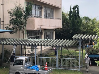 先日の台風で、藤代中でも、廊下への雨の吹き込み、雨漏りなどの他に、木工室付近の倒木、藤武館の床、畳の被害等がありました。