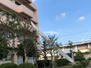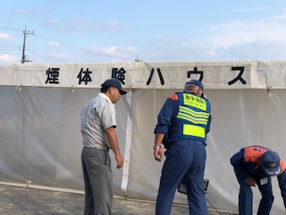 まもなく避難訓練がはじまります 公開日 2019/09/27 更新日 2019/09/27 学校行事 火災を想定した避難訓練です。煙幕体験と救助袋体験をします。椚木消防署の方が来て、準備をしてくださっています。いつもありがとうございます。