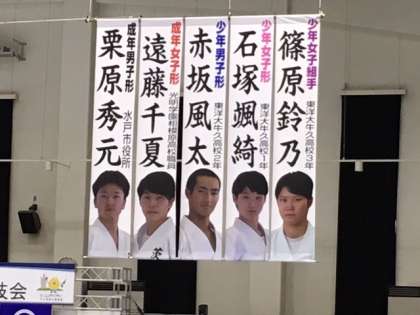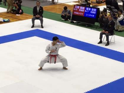 第74回国民体育大会空手道競技会 公開日 2019/09/28 更新日 2019/09/28 部活動 本日、牛久総合体育館で空手道競技会が開催されています。本校卒業生の石塚颯綺さんが茨城県の代表として出場しています。 1、2回戦を勝ち上がり、午後から3回戦です。