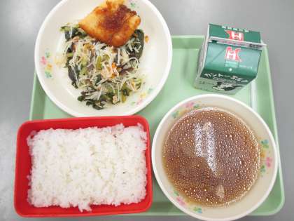 今日の給食の献立は ご飯 イカの香味ソース ビーフン炒め もやしのスープ です。 カロリーは,811㎉です。