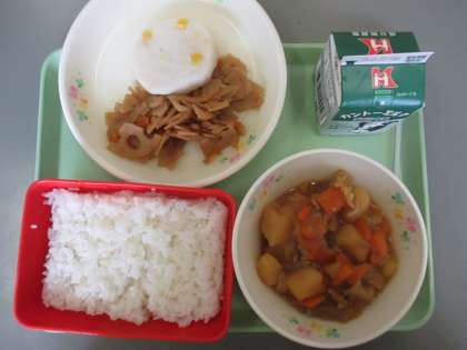 今日の給食の献立は ごはん コーンかまぼこ れんこんきんぴら 肉じゃが です。 カロリーは,840㎉です。