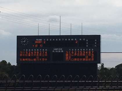県南新人体育大会(野球) 公開日 2019/10/17 更新日 2019/10/17 部活動 合同チームは3回戦を勝ち上がり、準決勝進出。VS都和中です。一回表2点を取りました。頑張っています。 応援、よろしくお願いします。