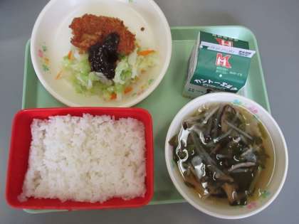 ごはん 味噌カツ 添え野菜 すまし汁 です。